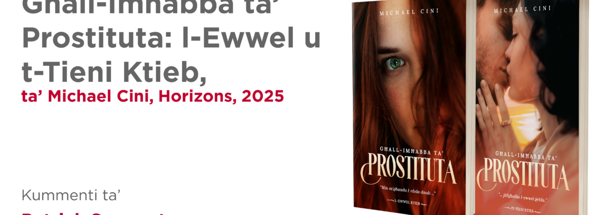 Isem Michael Cini llum sar sinonimu tan-narrattiva bil-Malti. Bejn l-2014 u l-2024 huwa kiteb mad-disa’ rumanzi għall-kbar (Preżenza, 2014; Ix-Xafra tad-destin, 2015; Skjava… Fil-Ktajjen tal-Imħabba, 2017; Konvoj, 2017; L-Ewwel Preżenza, 2018; Eroj, 2019; Il-Ħalfa tad-Destin, 2021; u żewġ volumi ta’ Imħabba Projbita, 2023) u żewġ kotba għat-tfal (Is-Sigriet tal-Ħares, 2022; Is-Sigriet ta’ Għajr is-Serp, 2024).   Għall-Imħabba ta’ Prostituta hu rakkont li jinqasam f’żewġ volumi u li jifrex b’kollox fuq iktar minn 600 paġna u jinqasam fi tnax-il taqsima (sitt taqsimiet kull volum) u numru mdaqqas ta’ kapitli. Din id-darba Michael Cini jagħtina l-istorja ta’ tfajla li minn età żgħira nqabdet fiċ-ċirku tal-prostituzzjoni. Saħansitra ġiet imrawma minn ommha stess biex taħdem bħala skjava tas-sess għal kull min xtaq jinqeda biha, imbasta jkollu biex iħallas. Imma l-ħolma ta’ Kimberly kienet dejjem li tkun bħal tfajliet oħrajn. Li tgħix ħajjitha kif xtaqet hi, u mhux kif jiddettalha dak l-arġużin bla skrupli li kien iħaddimha. Li ssib lil min iħobbha tassew sabiex, bħal ħaddieħor, tkun tista’ tibni familja. Ma xtaqitx tibqa’ tiddependi fuq min jinqeda biha biss biex wara li jagħsar minnha kulma ried, iwarrabha u jarmiha. Mhux ta’ b’xejn li dakinhar li jsibha ġuvni ġentili, mixħuta għal riħha mal-art taħt xita qliel wara xebgħa ħarta li kienet qalgħet f’nofs ta’ lejl, din urietu li xtaqet li tibqa’ miegħu għal dejjem ħalli tkun tiegħu biss. Għax għaliha, dan il-ġuvni ġentlom kien differenti minn irġiel oħrajn. Għaliha, dan kien il-ġuvni li seta’ jeħlisha mill-jasar li kienet destinata li tgħix fih.